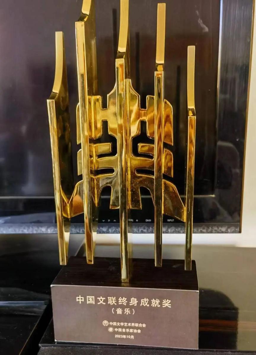家里成排的书柜上摆满了《音乐辞典》《歌曲创作札记》《新乐理教程》等与音乐创作相关的书籍、资料,大大小小的荣誉证书、奖牌奖状嵌于其间,见证了这位德艺双馨的人民艺术家的艺术历程。那座“中国文联终身成就奖(音乐)”奖杯,在冬日暖阳的照耀下煜煜生辉。中国文联终身成就奖旨在评选表彰各艺术门类涌现出的,拥有非常良好的社会影响力、代表性和示范性的75周岁(含)以上,长期为文艺事业发展作出突出贡献、德高望重的老艺术家。提到这次获奖,铁源用“荣幸与激动”来形容自己的心情,“我在音乐之路上取得的一切成绩,都是党和国家培养的结果。”
