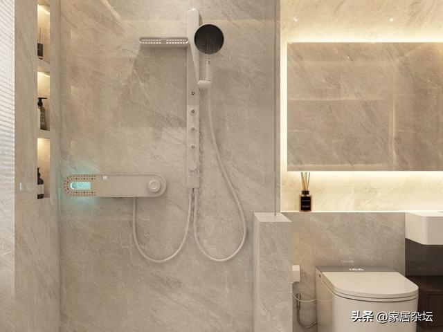 甚至,可以在这个装饰顶部预留一个窄槽,内嵌灯带。晚上,打开灯带,就成了一道温馨的背景灯光了。