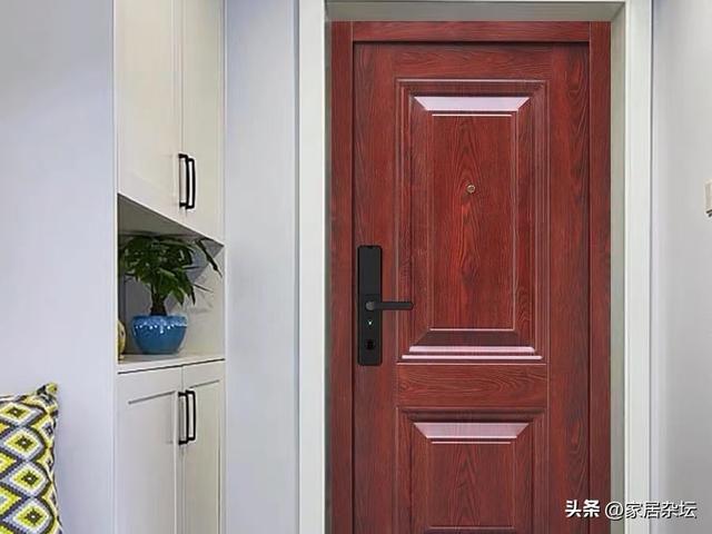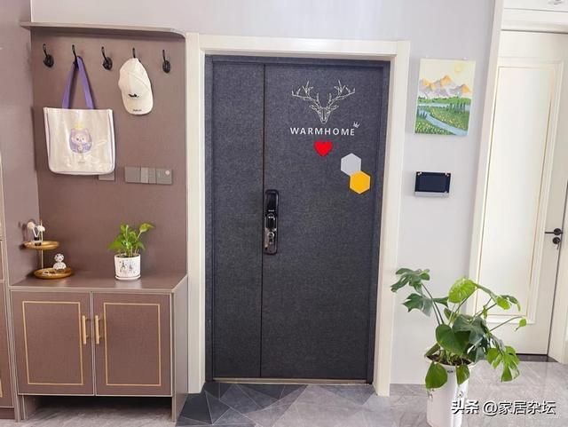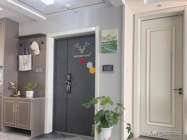 我家原来的入户门是开发商赠送的,也就是很多人所说的“猪肝红”入户门。可以说,与任何的室内家装设计风格都显得格格不入。