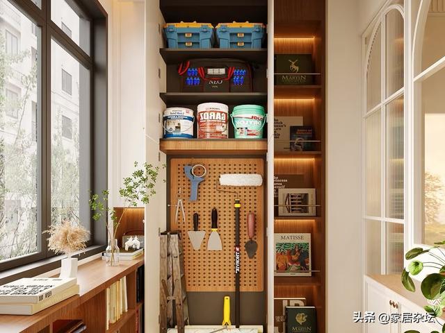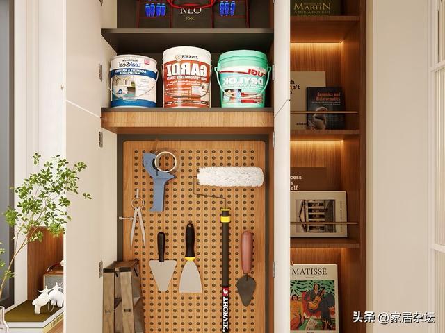 清洁工具隐形收纳,让家加显得更清爽更干净。而且洞洞板的布局灵活,所有工具一目了然,拿取也很方便。更加避免了工具的日晒雨淋,也会更耐用。